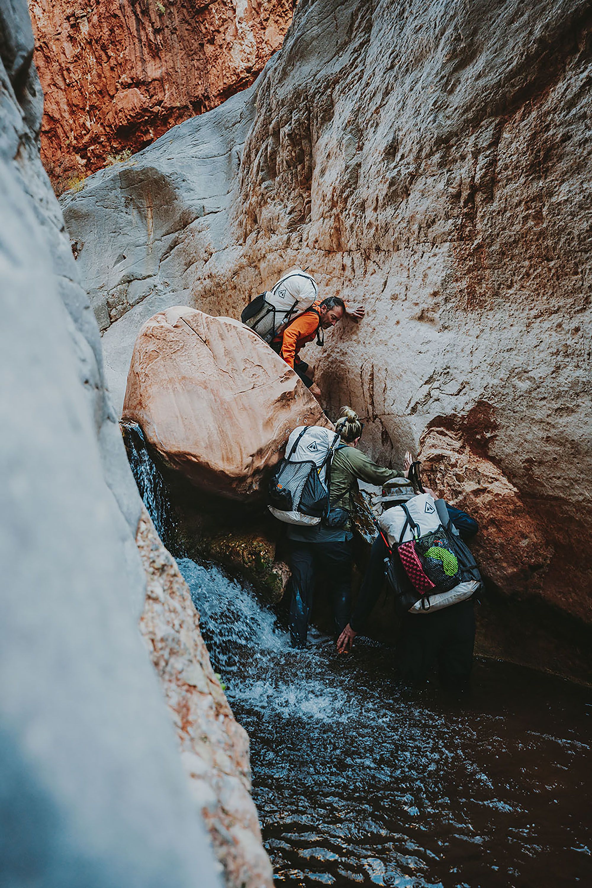 In January 2025, Hyperlite took the new range on a six-night, all-employee expedition to the Grand Canyon: climbing, camping, canyoneering, and more. The adventure served to strengthen bonds between Hyperlite’s marketing and R&D teams – but most importantly, it offered a rare chance to test the new packs in one of the world's toughest, most abrasive terrains.