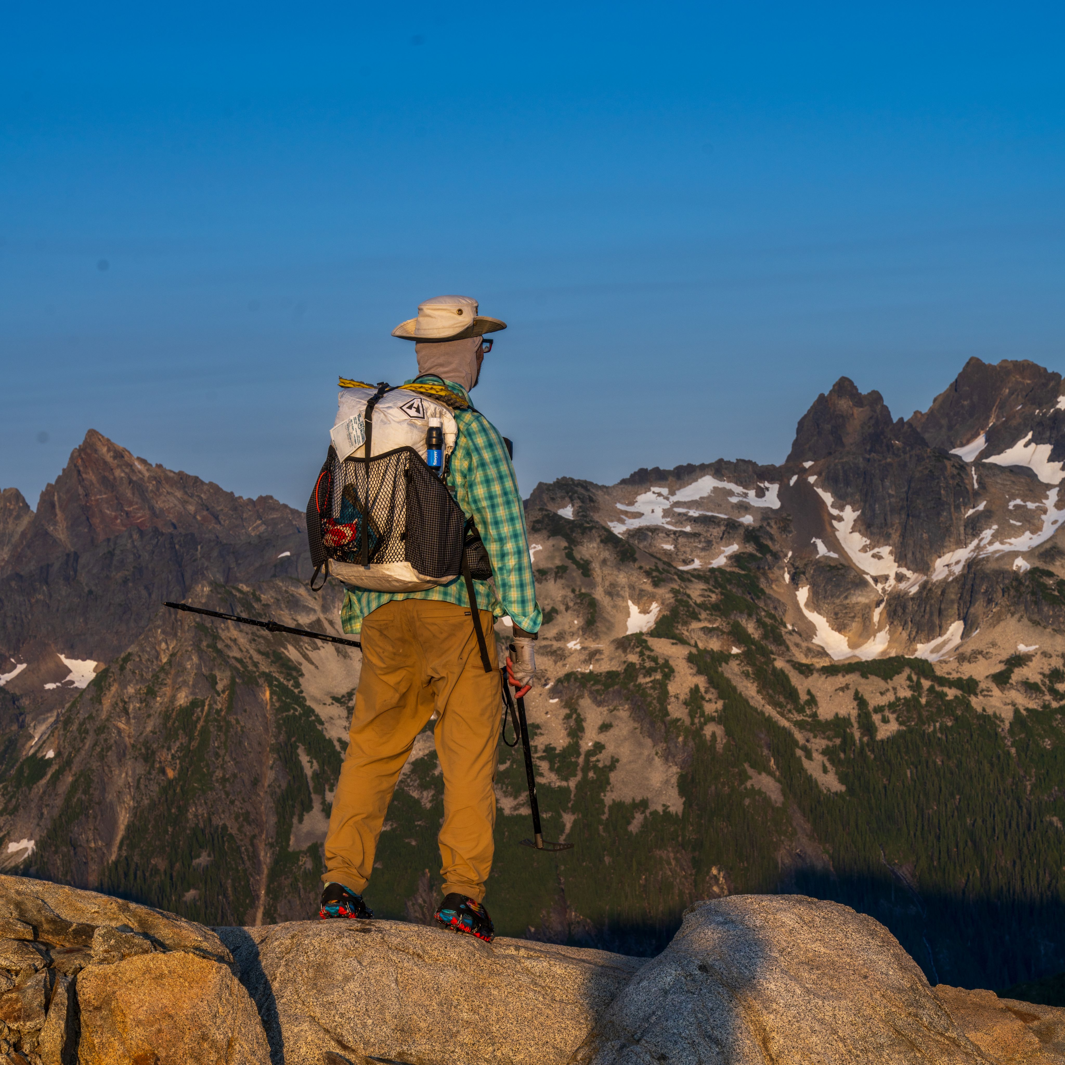 Scott is wearing Hyperlite Mountain Gear's iconic Southwest pack, freshly upgraded with Dyneema® Woven Composites, the latest composite material made with the world’s strongest fiber™. The Southwest is joined by the Windrider and Junction to complete the upgraded hike-anywhere pack range – Hyperlite Mountain Gear’s biggest refresh in 15 years.
